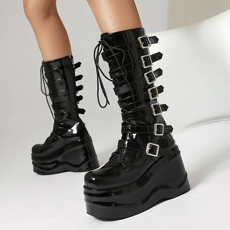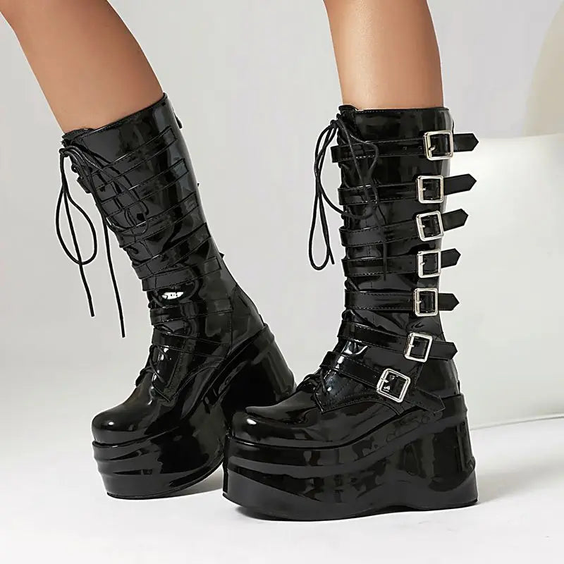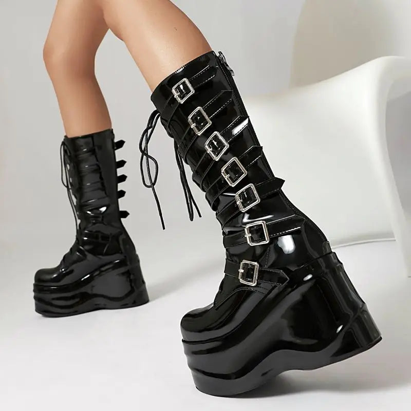 ✔️ מגפיים מבריקים בגובה אמצע השוק