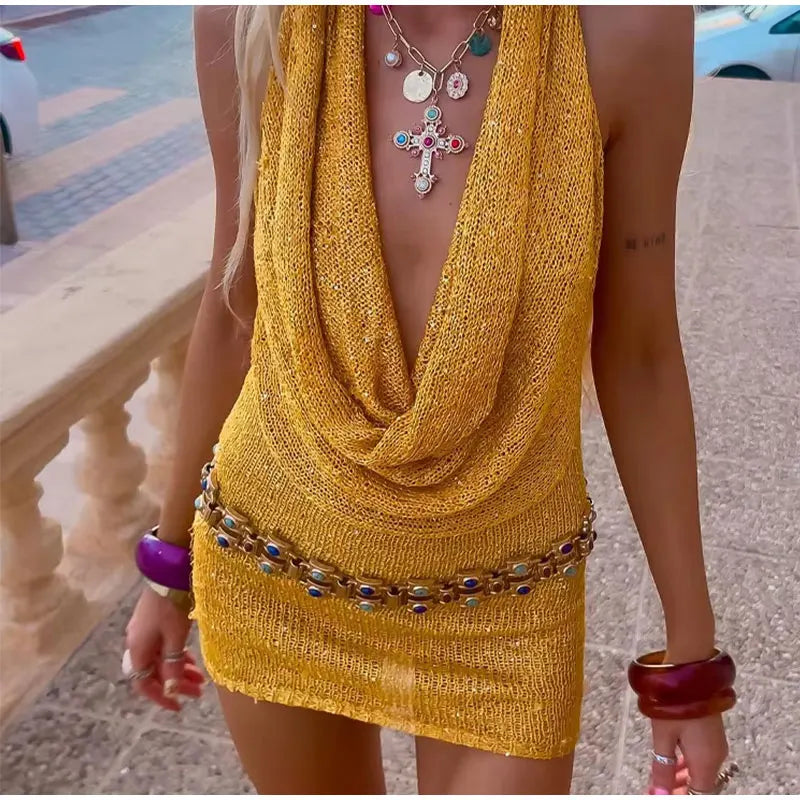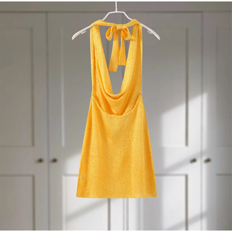שמלת מיני פאייטים בגזרת הלטר ✨