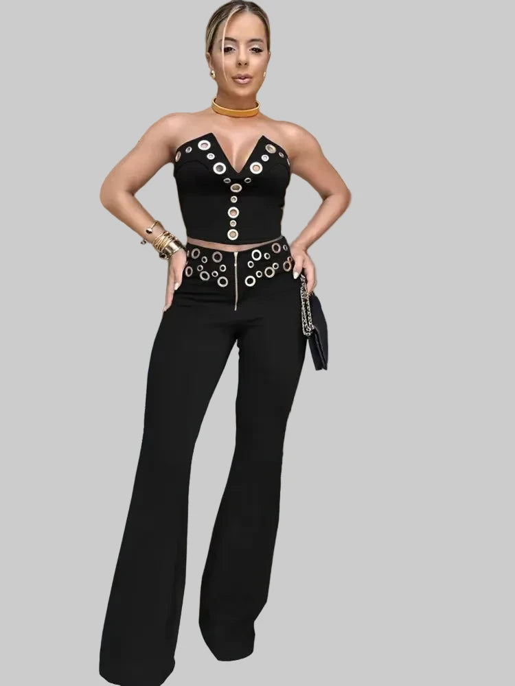 ✔️ סט 2 חלקים – טופ סטרפלס + מכנס ארוך